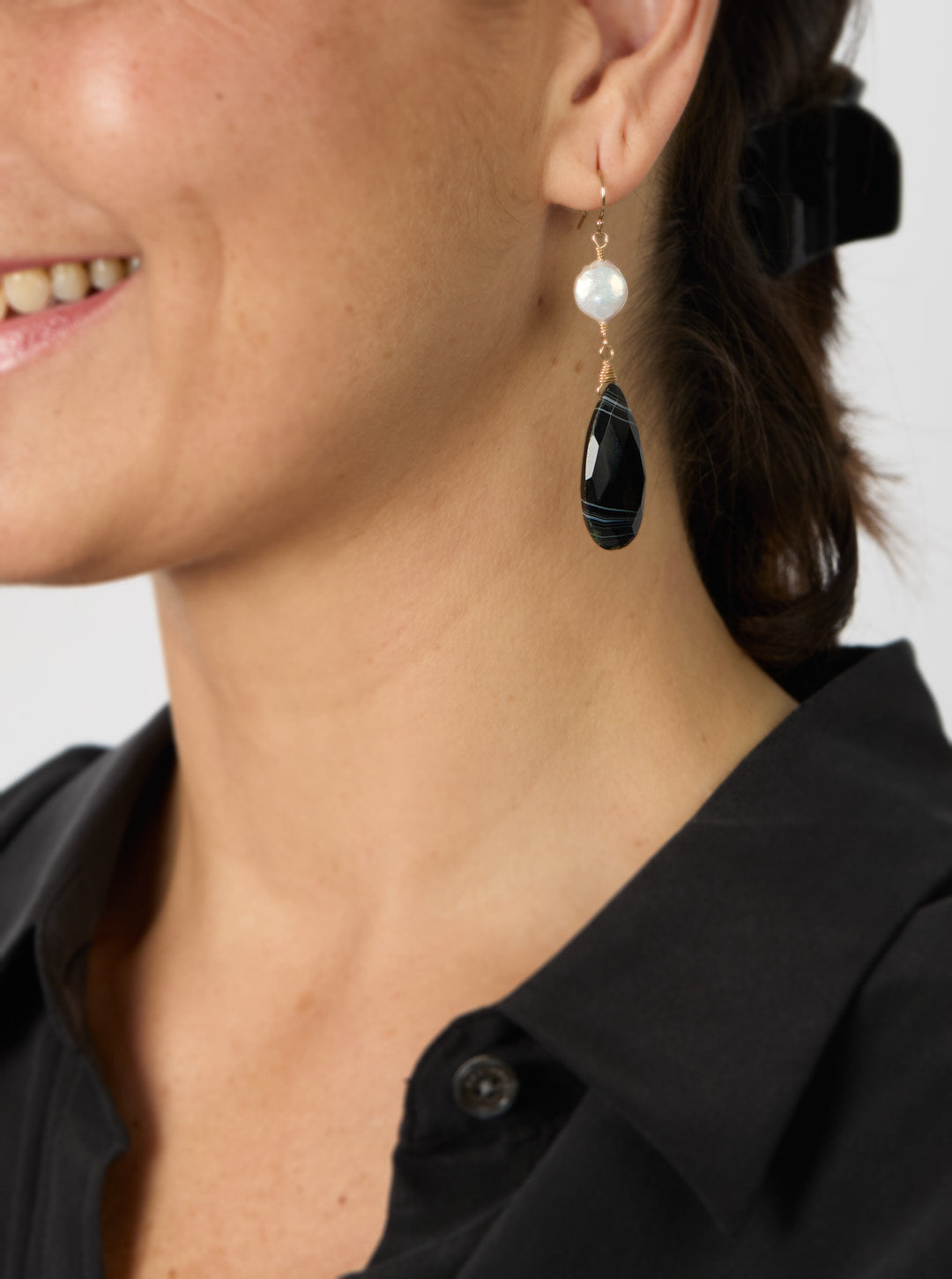 stone: black onyx 3 cm facet cut with white lines as they grow organic