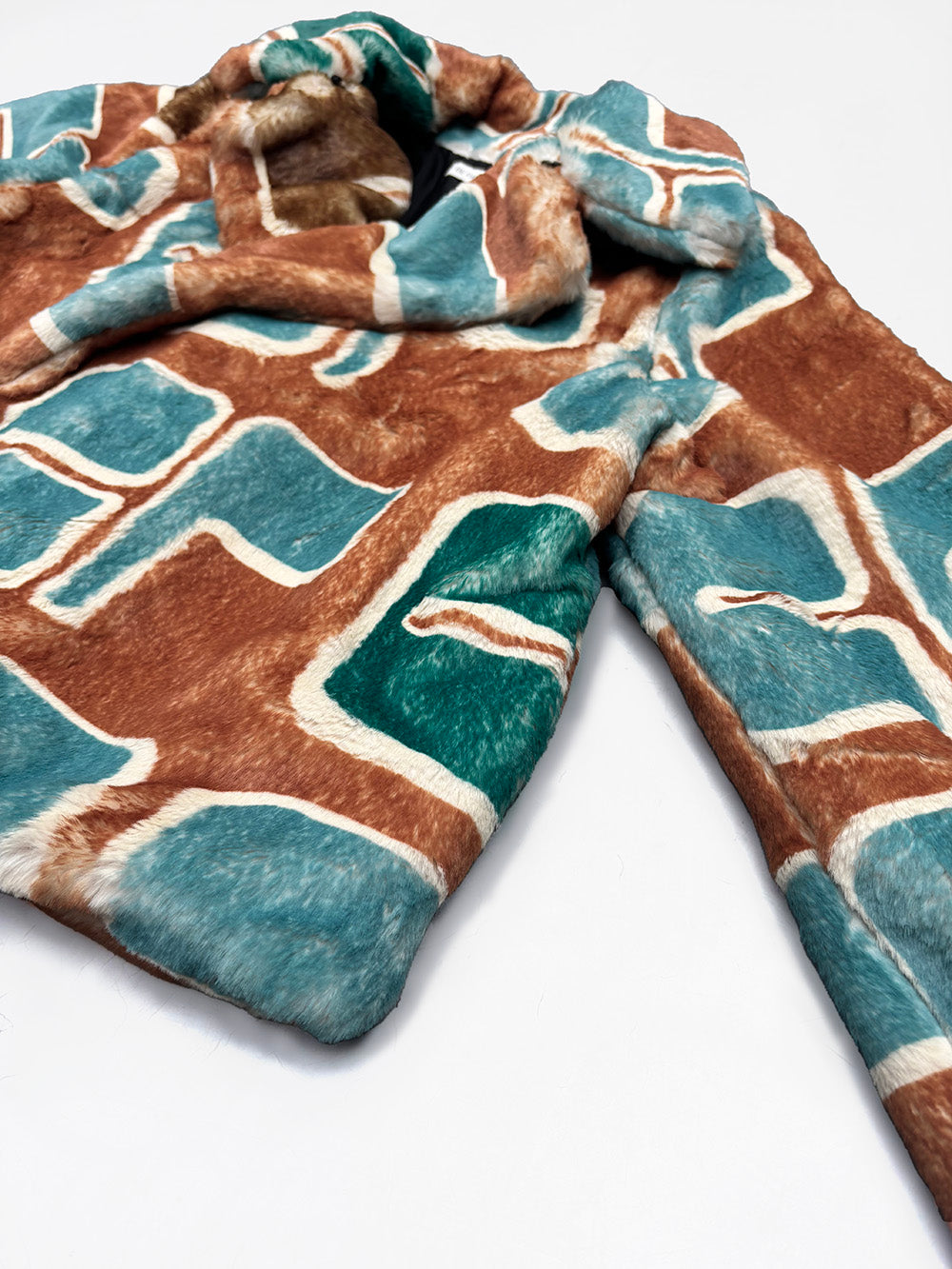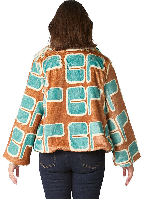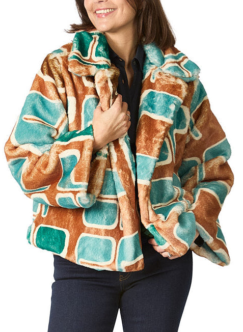 Design prints can be recognized by eye as you see one's designers history. Emmanuelle Legavre designs are graphic and you can recognize in this printed faux-fur coat. Each graphic is exclusive and the patterns are placed before assembly, which will make your jacket a unique piece. The softness of the furry coat makes that you keep in on even when coming home.
