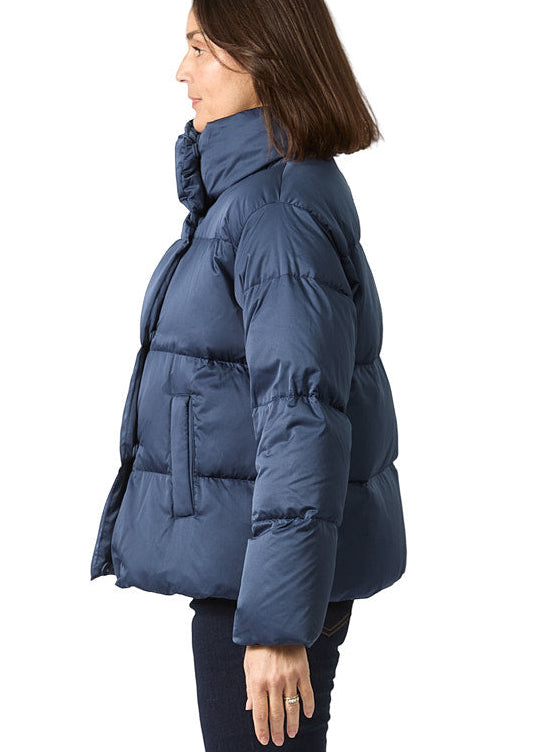 This Weekend short padded jacket is cut for a loose fit and is water-repellent. It boasts a quilted construction featuring goose down padding and a glossed-satin shell.