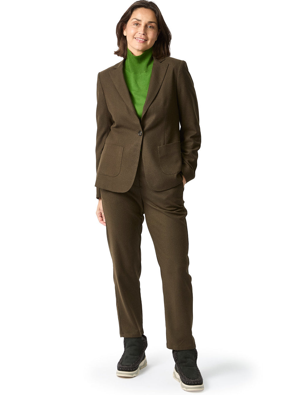 "The comfortable pants" is what we call this. No buttons nor zipper only an elastic waistband on the back. Pacifio pants are easy fitting and combined with this jacket made from the same fabric as well colour, well here is your suit. The pants shape is a basic model from Diega which you always can find in the collection. We believe it is timeless shape. Try a big long shirt or an easy fit pullover for a timeless look.